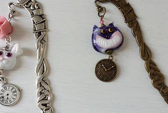 -Parce que forcément en tant qu'amoureuse des livres, on ne peut qu'aimer tout ce qui s'y rapporte notamment les marque-pages.-Parce que j'ai beaucoup de marque-pages de toute sorte (en papier ou plastifiés) mais quand j'ai vu ceux-là, j'ai craqué.-Parce que c'est original et que j'aime tout ce qui est unique, créatif et que quand je les regarde, c'est assez fascinant quand on réfléchit à comment c'est réalisé (le savoir-faire, la technique, l'imagination, les formes)-Parce que ça me rappelle l'île de Murano à Venise, que j'étais émerveillée face aux créations en verre filé et soufflé. Toutes ces couleurs, cette transparence, ces reflets et la lumière! C'est beau! -Parce que les créations de Boucles d'Or sont magnifiques : les deux marque-pages Alice au pays des merveilles (le chat du Cheshire et le lapin) sont des créations uniques et limitées (achetés lors d'une vente privée) et que mon marque-page "Féérie" (avec la fée lutine et la licorne) était une commande particulière, inventée en fonction de mes goûts et de ce que je voulais. Elle peut tout créer selon vos envies et votre personnalité (animaux, fées, bracelets, bijoux, objets)-Parce que ma marraine adore ces créas qu'elle m'a fait découvrir donc à chaque fois je pense à elle quand je les vois!-Parce que j'aime les voir dans ma bibliothèque!-Boucles d'Or Créations www.bouclesdorcreations.com et sa page Facebook en cliquant sur ce lien.