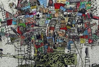 Zena Assi n’apporte aucune réponse géopolitique, car tel n’est pas son rôle ; elle affirme le ressenti d’une artiste confrontée à un drame humain. «My City» ne doit donc pas seulement être pris au sens personnel de la créatrice qui se partage entre Londres et Beyrouth, mais aussi dans son acception universelle; c'est la ville de chacun dont il est ici question. Voilà pourquoi, si ses paysages urbains demeurent, ils n’en ont pas moins changé de nature. Aux « millefeuilles de béton » (c’est ainsi que j’avais qualifié la thématique de ses principales toiles de 2012) fermement ancrés sur une terre plus ou moins rassurante, se substitue un enchevêtrement instable, fragile, posé sur des supports mouvants ou précaires.