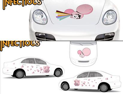 Infectious est une communauté d'artistes qui ont décidé de créer un art spécialement dédié pour les voitures. Le premier catalogue a été créé notamment par Dalek, Buff Monster, Junko Mizuno, et le collectif va bientôt lancer une section collaborative sur leur site, de sorte que d'autres artistes puissent participer au projet. Un nouveau projet plus qu'intéressant pourse faire connaître au delà de nos frontières, n'est-ce pas ?