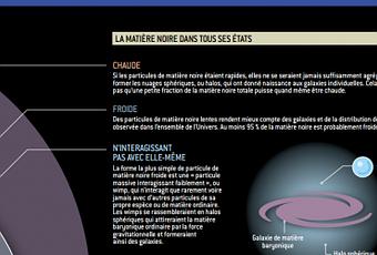 .Je les cite : « . Une piste consiste à supposer qu’il existe plus d’un type de particules de matière noire et que celles-ci seraient sensibles à une force qui n’agirait pas sur la matière ordinaire. Dans ces modèles, ces particules porteraient, par exemple, un nouveau type de «charge sombre», attractive ou répulsive tout en les laissant électriquement neutres. De la même façon que les particules ordinaires dotées d’une charge électrique peuvent émettre des photons, ces hypothétiques particules dotées de cette charge sombre pourraient émettre des «photons sombres» On retrouve des lois qui rappellent celles de la matière ordinaire sans pour autant en être une réplique exacte. Par exemple, l’échange de photons noirs entre particules noires, dans certains modèles, formerait des sortes d’atomes… Ce doit être moins fréquent que l’échange de photons pour la matière ordinaire. L’une des raisons est la suivante. Au sein de la matière ordinaire, l’émission de photons permet aux particules d’échanger de l’énergie. Cela a une conséquence importante sur la formation des galaxies. Les nuages de gaz au sein d’une galaxie en formation rayonnent de l’énergie, ce qui a pour effet d’agréger la matière au sein des nuages. La conservation du moment cinétique (qui mesure une rotation) empêche la matière de se contracter jusqu’à un certain point, et la structure forme un disque. Si les particules de matière noire émettaient des photons sombres tout comme la matière ordinaire échange des photons, on aurait aussi des disques de matière noire. Or pour expliquer la forme des galaxies, la matière noire devrait être plutôt distribuée sous la forme d’un nuage sphérique, le «halo». Avec des échanges de photons noirs limités, la perte d’énergie du halo de matière noire serait minime. On peut cependant imaginer des modèles où une petite fraction de la matière noire échange des photons noirs en grande quantité, tandis que la majeure partie se comporterait plutôt comme de simples wimps. »…..