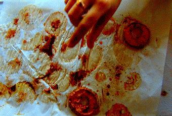 Des pommes "écoeurées", en tranchesTrempées dans environ 1\4 de tasse de sirop d'érable (pour 5-6 pommes) et pas mal de cannelle ...