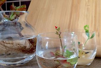 J’ai bouturé certaines de mes succulentes du jardin, j’ai même des petites fleurs rouges pour égayer ma cuisine…