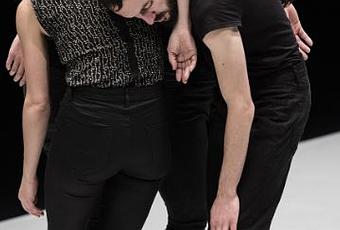 Ce sont quatre corps liés par des gestes réciproques et revenants. C’est une ronde où tournent les faces, les dos, les mouvements, comme une frise de temps à la surface d’un vase. Chaque corps déroule dans le corps suivant la danse d’un corps commun autour d’un trou de mémoire. La danse révèle les images toujours déjà là dans les formes survivantes autour de quoi tourne la ronde des corps.