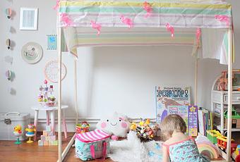 Puis il y a quelques jours j'en ai parlé à l'homme, lui ai montré des photos...et quelques tasseaux plus tard les enfants avaient une cabane installée dans la salle de jeux !