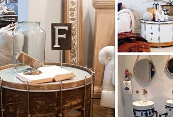 Vous savez que je suis une inconditionnelle de la chine et du recyclage ! Je suis toujours à l'affût quand il s'agit de trouver de nouvelles idées pour donner une nouvelle vie, et même une nouvelle fonction aux objets. Aujourd'hui, c'est au mélomane qui sommeille en vous que je m'adresse :-) parce qu'un 33 tours rayé n'est pas forcément bon à aller à la poubelle ! Je vous assure ! Vous pourriez par exemple le transformer en lampadaire ou en tabouret original ! Une batterie peut aisément se transformer en table basse, en horloge ou en lustre, tandis que votre vieille guitare fera une merveilleuse étagère ! Alors attendez un peu avant de jeter et recyclez ;-)