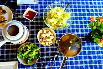 Pour plonger dans le dit bouillon....en plus du seitan tranché le plus mince possible;du tofu en cubesdu brocoli.