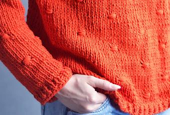 Au final , il est vraiment très très simple ce modèle : le dos & le devant ne sont que des rectangles & ce n'est presque que du jersey tout du long , j'ai juste calé quelques côtes en bas & au bout des manches pour ne pas que ça roulotte & puis j'avais cette envie de donner une petite touche différente , originale , à mon sweater ... alors j'y ai intégré quelques Estonian Buttons , histoire de lui donner un peu de texture .
