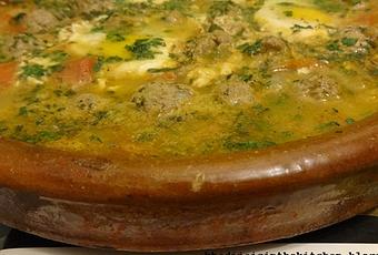 1. تقطع الطماطم (البندورة) و بصلة و نصف الى مربعات صغيرة ثم توضع في الطاجين مع زيت الزيتون و تترك لتطهى على نار هادئة.2. في هذه الأثناء ،يخلط جيدا اللحم المفروم، عصير الليمون ،الكزبرة المفرومة أو البقدونس ، نصف البصل المتبقى مفروم ،الفلفل ،الملح والكمون .تشكل كرات صغيرة وتوضع جانبا في الثلاجة .3. بعد ان ينقص ماء الصلصة قليلا ، يضاف القليل من الملح والفلفل ثم توضع كرات اللحم في الطاجين . يغطى الطاجين و تترك الكفتة تطهى على نار هادئة.عندما تنضج كرات اللحم ، تشكل حفرات صغيرة بين كرات اللحم و يكسر البيض و يصب فيها ثم يضاف البقدونس المفروم أو الكزبرة .يواصل الطهي على نار هادئة، دون تغطية الطاجين ، الى ان ينضج البيض تقريبا.