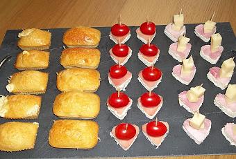 Coucou, prêt pour le weekend, pour l'apéritif je vous propose ce plateau hihihi vite je vous attend lol Je vous présente donc mes mini cakes Vache qui rit, mes mini cakes au bacon et mes sandwichs jambon emmental Vache qui rit et bacon ail et fines herbes tomate.