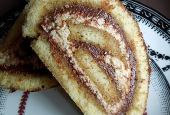 Imbiber le biscuit du sirop de café sur les 2 faces. Etaler une fine couche de ganache chocolat puis une couche de crème et rouler le gâteau en serrant au maximum. Réserver au réfrigérateur avant de couper en tranches.