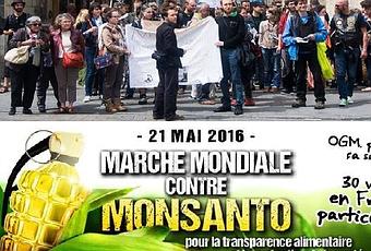 Le 21 Mai 2016, les citoyens du monde entier, dans une cinquantaine de pays et plus de 25 villes françaises, marcheront à nouveau contre Monsanto et consorts (Bayer, Syngenta, les multinationales des OGM et des pesticides). Toutes et tous dans la rue pour condamner ce modèle agricole accro à la chimie et aux manipulations du vivant, imposé au détriment des peuples et des paysans qui les nourrissent !