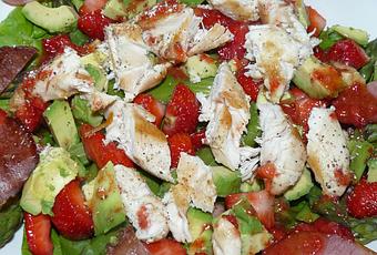 Découper l'avocat en gros dés et le répartir sur la salade.