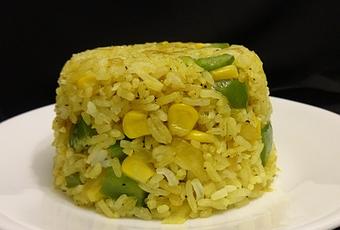 Dans un poêle, verser l'huile et y ajouter l'oignon coupé en petits morceaux. Laisser cuire l'oignon un peu, sur feu moyen, puis ajouter le poivron coupé en dés, l’ail émincé et les épices. Laisser cuire jusqu'à ce que le poivron soit un peu tendre puis ajouter le maïs.Quand le mais devient tendre, ajouter le riz et laisser cuire environs 4-5 minutes en mélangeant de temps en temps. Rectifier l'assaisonnement.