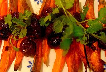 Les languettes (2 grosses patates douces) sont cuites au four, avec un soupçon d'huile d'olive, du cumin et...