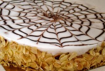 Faire fondre le chocolat au bain marie, le monter à température ambiante. En mettre une partie dans le cornet pour la décoration. Tirer les bandes avec le cornet et avec la pointe du couteau d’office, tracer des traits perpendiculaires.