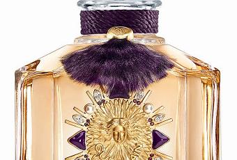 Le Bouquet à la Reine est construit autour des plus belles essences de jasmin, de galbanum et de bergamote. Il s’affiche dans le mythique flacon Quadrilobé de Guerlain, avec cordon de soie et bijou sculptural signé du parurier haute couture Desrues