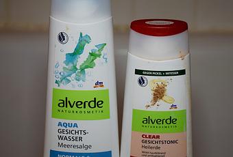 ensuite, j'applique une petite eau alverde ou une eau florale, cela dépend comment est ma peau. si elle est grasse, ça sera mon eau à l'argile alverde, sinon une eau de lavande ou de rose.