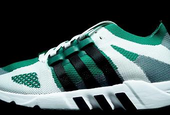 Tout est dans le titre, voilà une adidas EQT (Equipment pour ceux qui ne suivent pas) Running Guidance version Primeknit. En revanche pas de technologie Boost pour la semelle, pour l’heure, nous ne savons toujours pas si la semelle à été revue à la baisse au niveau du poids. Son coloris est naturellement reproduit à l’identique de l’OG, du vert, blanc, gris et les 3 bandes noires.