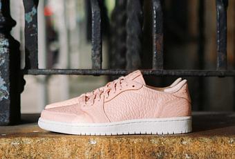 Véritable atout casual de Jordan Brand, la Air Jordan 1 se voit aujourd’hui déclinée de la plus sobre des manières abandonnant ainsi tout artifice au profit d’une silhouette qui se veut haut de gamme. On retrouve ainsi une AJ1 Low disposant d’un upper composé d’un cuir pleine fleur embossé créant une texture unique pour un modèle qui se veut définitivement premium. On retrouve cependant quelques légers branding propres à toute bonne marque de sportswear à travers un wings logo sur le talon et un Nike Air sur la languette qui se veulent cependant relativement discrets.