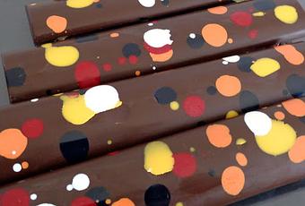 Ananas, papayes et zestes d'oranges confits, bleuets et canneberges séchés donnent du relief et de la texture au chocolat noir..