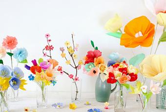 Envie de couleurs et de légèreté dans votre intérieur ? Pensez aux fleurs en papier de soie ! Elles décoreront vos tables estivales, buffets, murs, etc.