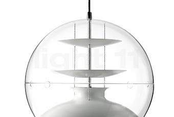 La Suspension est composée d’un globe en acrylique transparent avec des réflecteurs intérieurs de couleur blanche superposés grâce à 3 chainettes en acier.Le Câble électrique est gainé de tissu noir. La Rosace est en métal chromé. La signature de Verner Panton est gravée sur l’embout métallique du câble électrique et un certificat d’authenticité garantit la provenance de ce luminaire identique à l’édition originale.