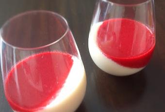 Une Recette Dessert Léger et Rapide panna cotta avec coulis de framboise.