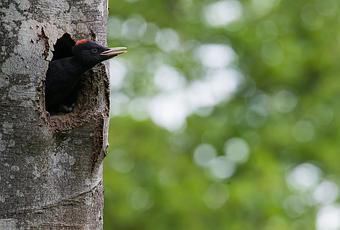 - Le pic noir est un oiseau puissant qui creusera sa loge dans des arbres vivants, le plus souvent dans un hêtre, à une hauteur de l’ordre de 6 à 10 mètres de haut.