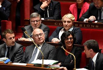 Assemblée nationale (Paris). Manuel Valls a tancé Emmanuel Macron sous les yeux de Michel Sapin et de Myriam El Khomri I ©AFP/Eric Feferberg