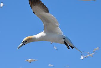 Les oiseaux de la seule colonie hexagonale de Fous de Bassan, située dans les Côtes d'Armor, pêchent en Manche ouest dans un rayon de 200 kilomètres © David Grémillet