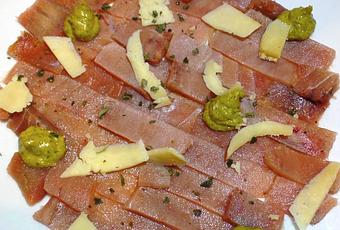 Dans les carpaccios de viande ou de poisson, la cantal remplace agréablement le traditionnel parmesan en garniture sous forme de copeaux.
