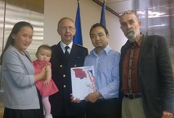 Cet après-midi j'ai assisté à cette belle cérémonie en Préfecture de la remise des décrets de naturalisation et d'accès à la nationalité française. 14 fontenaysiens et fontenaysiennes étaient concernés. Je garde cette précieuse photographie qui me réunit avec ce couple originaire du Thibet avec leur bébé de huit mois et le Sous-Prefet de Nogent. Un couple passé par le parcours de l'exil, du statut fragile de réfugié politique. Le long parcours d'embûches pour accéder enfin à la nationalité française qui les libère et leur offre un nouvel horizon.