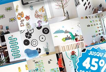 StreetArt, PopArt, Design, Geek ou Kids: De nombreux Stickers muraux avec des réductions de -10% -15% -20% -30% et jusqu'à -45%! Voilà une bonne occasion de relooker ses murs avec une déco originale à petit prix!