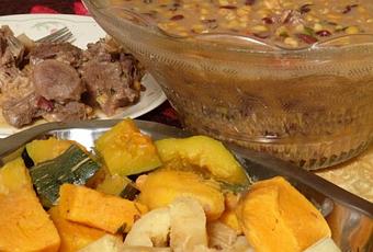 Epluchez maintenant le manioc, les patates douces, le chou et la courge. Coupez le tout en rondelles et en morceaux.