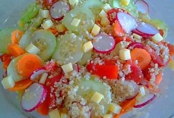 6- Mettre le fromage et les légumes avec le mélange boulgour quinoa et mélanger.