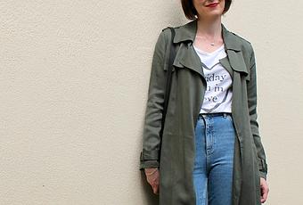Trench fluide - Promod (collection actuelle)T-shirt - Altru via Urban OutfittersJean Mom - Topshop Baskets - ConverseSac - Longchamp vintageCollier - 7 bis