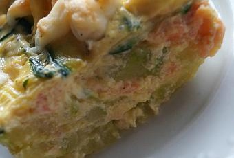 - Étaler les Rondelles de Courgettes au fond d'un plat qui va au four, verser la préparation à base d'Oeufs au dessus, mélanger un peu. Ajouter les lamelles de Courgettes au dessus. Puis le Fromage de Chèvre coupé grossièrement, Poivrer.