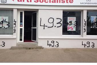 Regarder des images, par le biais de ce compte TumblR notamment, de locaux fauxcialistes redécorés – avec plus ou moins de bon goût et d’esprit – m’amuse plutôt. Je ne ressens pas la moindre gêne, et encore moins d’indignation. Ils ne font que récolter ce qu’ils sèment. Je regrette simplement que d’ autres partis ne fassent pas l’objet eux-aussi de la même attention, parmi ceux qui votent avec eux leurs textes régressifs et anti-sociaux, de la loi travail à celles qui permettent la surveillance de masse et l’état d’urgence permanent, intolérable loi d’exception indigne d’un état de droit. Pire, je signe mon forfait en rêvant de révolution, et me tiens prêt à y apporter mon concours actif et plein de ressources si nécessaire… Face à tant d’injustices flagrantes, tant de mépris pour le peuple, tant d’indifférence pour cette si faible représentativité des partis et des personnalités politiques quels qu’ils soient, devant tant d’irrespect des règles démocratiques les plus fondamentales qu’ils ne cessent de violer tout en poussant des cris de vierges effarouchées pour une chemise déchirée en hurlant avec les loups, il m’apparait urgent de laisser s’épancher notre colère, profonde, immense. Sincère. Honnête. En ce sens, ne vous en déplaise, les bien-pensants, je refuse de me désolidariser des « casseurs », même si ce n’est personnellement pas le chemin d’expression que j’ai choisi. Et j’appelle même à d’autres formes de lutte et de protestation pour enrayer ce système qui va si mal. je ne vois pas de raison en effet pour qu’il ne broie que nous autres, les manants, et laisse tranquillement barboter dans leurs jaccuzzis les responsables de cette incurie générale. Leur faire peur, ils ne comprendront que ça, c’est le seul garde-fous, le seul pare-feux politique que je vois, pour l’instant, qui m’apparait représenter un minimum d ‘efficacité concrète. L’action directe. Le reste n’est que palabres sans fin qui n’aboutissent qu’à brasser du vent. OUI, la peur doit changer de camp ! j’en appelle au Général Ludd ! Que se vayan todos !