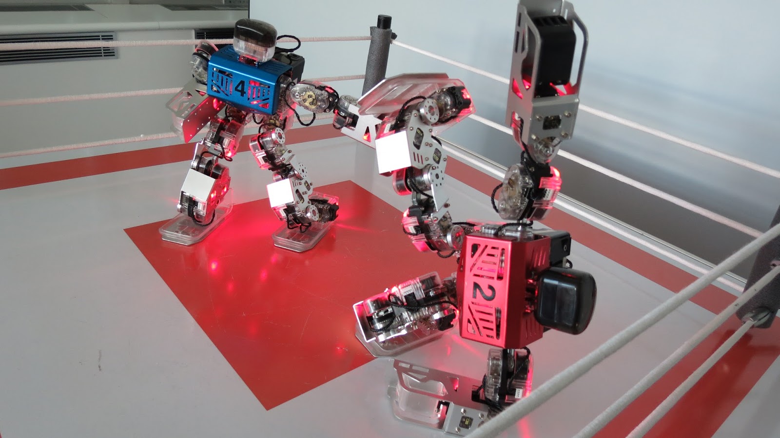 Avec un plateau de 1m2 et 2 protagonistes pugilistes mais pas que! Les coups de pieds autorisés, le combat de robots est une animation événementielle nouvelle au catalogue de COGIBOT EVENTS