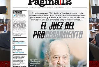 Un mois après avoir entendu Cristina de Kirchner en audition dans son cabinet, le juge Bonadio a décidé de l'inculper dans l'affaire de la vente des dollars à terme. Une inculpation étendue à son ministre des Finances, Axel Kiciloff, au gouverneur de la Banque Centrale de la République argentine et à douze autres hauts commis de l'Etat nommés par elle. Le juge a fait mettre sous séquestre leurs biens à hauteur de 15 millions de pesos chacun.