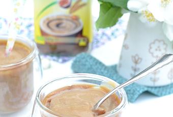 De la poudre (de la marque A. Vogel dont je vous ai déjà parlé dans ma dernière recette de brochettes), un substitut de café instantané (il en a le même goût, c'est assez bluffant) à base de chicorée, céréales et figues, pour un dessert 0% caféine-0% chimique-100% gourmand ;