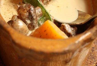 Un magnifique et appétissant plat présenté en cocotte fumante et où le client se sert joyeusement et qui permet de le garder au chaud. Copieux, une sauce parfaite de goût et de texture, lisse mais pas liquide, où les légumes et les lardons donnent un goût unique au plat et où la qualité et le mélange des trois morceaux de veau différents, là aussi d’un fondant parfait, donnent un goût unique pour cette meilleure blanquette goûtée à ce jour. Bonne nouvelle : elle est à la carte toute l’année.