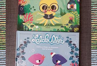 Les voici! Les voilà!!! Les Lalabulles, la nouvelle collection pour les petits de chez Milan, illustrés par Lucie Brunellière, fraîche et pimpante, délicieuse et excellente pour buller sur la plage ! Les deux histoires proposées sont proches des préoccupations des plus petits et le texte à hauteur d'enfants est efficace. Ca nous parle d'amitié, de jeux avec les copains, de disputes entre un frère et une soeur, de complicité, de tendresse et de manière d'exprimer ses sentiments... des petites et grandes émotions qui prennent vie sous la plume drôle et attendrissante de Karine Dupont-Belrhali... Côté illustrations, ça pétille de couleurs acidulées, vives et franchement joyeuses. J'aime beaucoup les illustrations de Lucie Brunellière qui mise ici sur les formes aux contours ronds et doux, l'attractivité des couleurs pétulantes, presque flashy, bien contrastées qui attirent le regard et captent l'attention. J'adore! L'univers coloré est sympa et le fait que ça se passe sous l'eau est également très captivant pour les enfants car on retrouve des clins d'oeil à l'univers marin, aux poissons (le Parc-à-Sable, le Batokoulé comme espace de jeux, le gâteau aux algues). Une collection aux dessins mignons à croquer et visuellement réjouissants, adorables qui donneront envie aux enfants de plonger tout court dans la lecture! A emmener partout avec soi pour les vacances d'été!