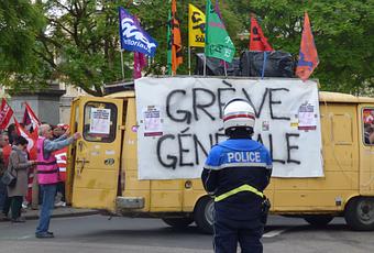 Que vaut en effet une manifestation qui ne dérange personne ? En outre, ce lieu constituait un goulet d’étranglement générant de la tension dans la manifestation, déjà arrêtée précédemment par les forces de l’ordre pendant plusieurs minutes pour laisser passer les véhicules. La sécurité du cortège était en occurrence plus que discutable… Mais mal lui en a pris. Il a aussitôt été agressé violemment par un membre du service d’ordre de la CGT qui a levé la main sur lui, menaçant de lui donner un coup de poing, les yeux injectés de haine, prêt à frapper. 5 autres gros bras du SO de la CGT l’ont ensuite immobilisé sans ménagements et l’ont extirpé manu militari du cortège, lui intimant l’ordre de ne plus y retourner, comme s’il s’agissait d’un vulgaire voyou. On appréciera la qualité et l’intelligence de situation dudit SO, prêt à frapper un individu isolé, pacifique, non violent, non armé, qui n’a rien cassé ni insulté ni agressé personne, simplement désobéissant… Manifestement, à la CGT, la désobéissance, on n’apprécie pas.On frappe avant de réfléchir…. Une réaction violente complètement disproportionnée. CQFD. A la lumière de ce genre d’incidents, on comprend mieux les soupçons de collusion, si ce n’est de collaboration, entre le So de la CGT notamment et les forces de l’ordre…