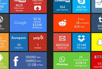 Ce type de présentation offre une lecture plus captivante des statistiques. Pour ma part, le compteur de la dépense des touristes m'a impressionné et d'autres chiffres plus anecdotiques m'ont amusé voire effrayé (1076 selfies chaque seconde dans le monde !). En survolant un compteur, le carré pivote et dévoile l'explication précise du chiffre.