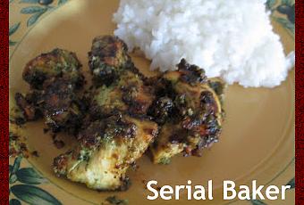 -6g de sucre -25g d'huile d'olive -35g de noix de cajou grillées et salées -2 cuillerées à café de vinaigre blanc -une ciboule chinoise ou un bel oignon nouveau avec le vert -une gousse d'ail -1/2 cuillerée à café de cumin en poudre -1/4 cuillerée à café de poivre moulu -1 cuillerée à café de vinaigre balsamique -1/2 cuillerée à café de pulpe de tamarin séché -un bouquet de coriandreDécouper le poulet en petits morceaux. Réserver dans un grand bol ou un saladier. Mixer tous les ingrédients de la sauce avec un mixer ou un blender. La sauce doit être homogène. Verser sur les morceaux de poulet et laisser mariner 1 heure environ.Verser dans une poêle chaude les morceaux de poulet avec la marinade. Cuire en remuant de temps en temps jusqu'à ce que les morceaux de poulet soient cuits (cela devrait prendre quelques minutes).Servir chaud.