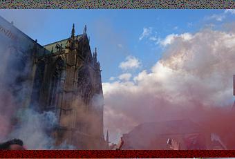 Metz, place d’Armes, un samedi après-midi, mais que se passe-t-il donc ? Des fumigènes, des cris, de la ferveur ? Pour qui ? Pourquoi ? Est-ce pour la grande roue démontée trop tôt ? Je ne pense pas !