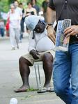 Quelle vedette américaine a été prise en photo avec un genre d’itinérant qui dort sur sa chaise en arrière-plan??