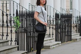 Un petit look citadin, marinière et slim noir Uniqlo (petit craquage aux Quatres Temps lors de mon dernier passage sur Paris …)(3 marinières, 2 jeans, une robe, tout va bien), sneakers Movel et petit sac chouchou Alexander Wang ♡