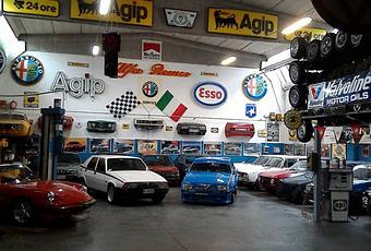 Son "Garage 66" est un véritable temple dédié à la marque, plein de modèles historiques d'Alfa Romeo restaurés et d'objets de collection.